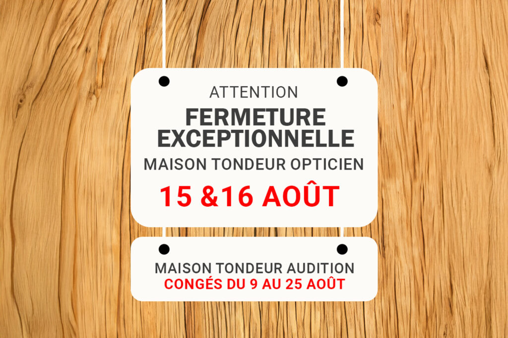 Nous vous informons de deux informations importantes concernant l’organisation de nos établissements MAISON TONDEUR OPTICIENS et MAISON TONDEUR AUDITION pour la période estivale :